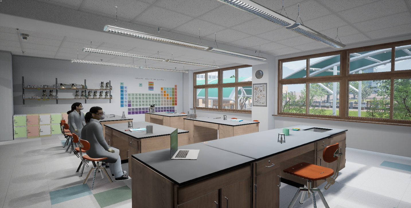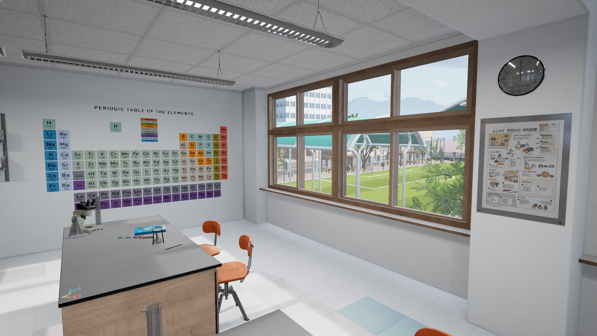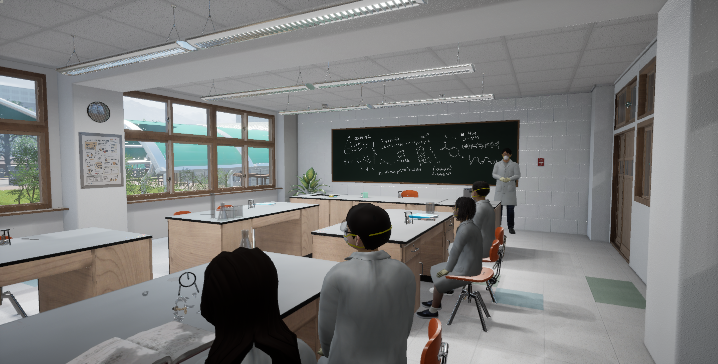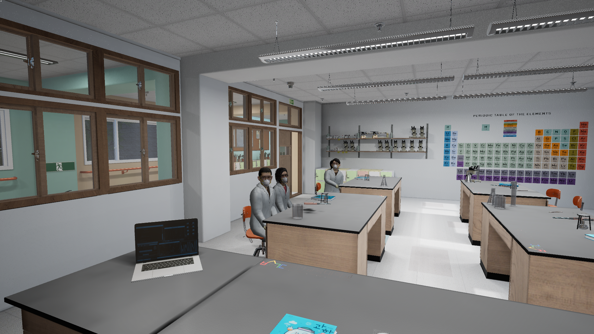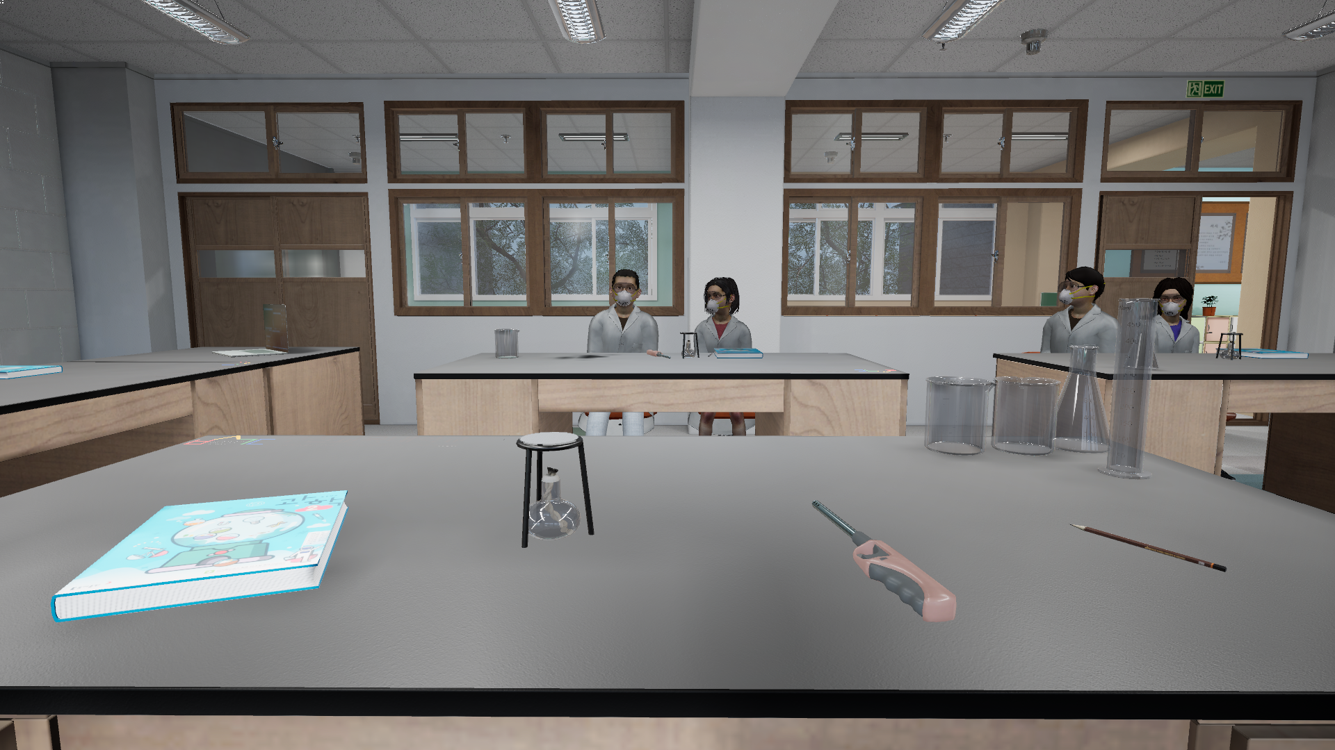 01. Realistic Laboratory Environment: Participants feel as if they are attending an actual class, experiencing scenarios where a teacher conducts a lesson and students cause an alcohol lamp accident through mischief. The laboratory and hallway are designed to reflect real-world dimensions, with detailed classroom decorations and equipment, providing a highly realistic virtual environment.