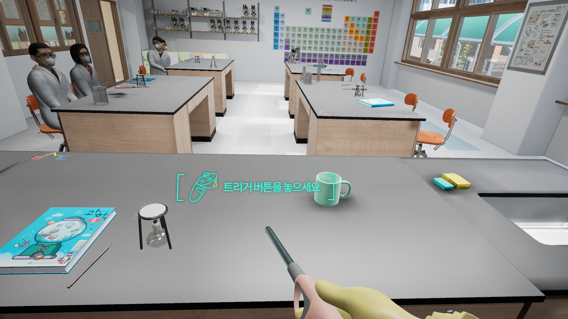 04. Sense of Achievement: Aiming to improve inquiry-based scientific thinking, this experiential content enables repetitive learning and comparative experiments in a virtual laboratory. Instead of repeating a single experiment, two mini-experiment scenarios centered on acid-base titration allow users to experience different conditions and situations. Users can directly set or experience changes in indicators, concentrations, and volumes, visually confirming reaction differences based on variables.
