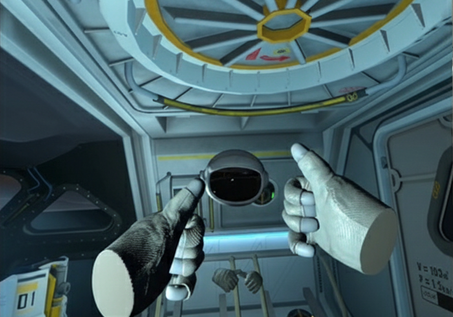 01. Hand-Tracking-Based Interaction: We apply hand-tracking technology that precisely recognizes users’ hand movements, enabling intuitive interaction without controllers. Using motion sensors of VR/AR devices and deep-learning gesture-recognition algorithms, even fine finger movements are detected in real time. This allows natural execution of various interactions such as operating equipment, using exploration tools, and scanning the environment. The results of interactions are conveyed realistically in the virtual environment, providing an immersive experience as if users are actually participating in a lunar mission.