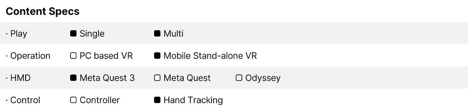 | Experience the content with an HMD | VR HMD : Meta Quest 3 |
