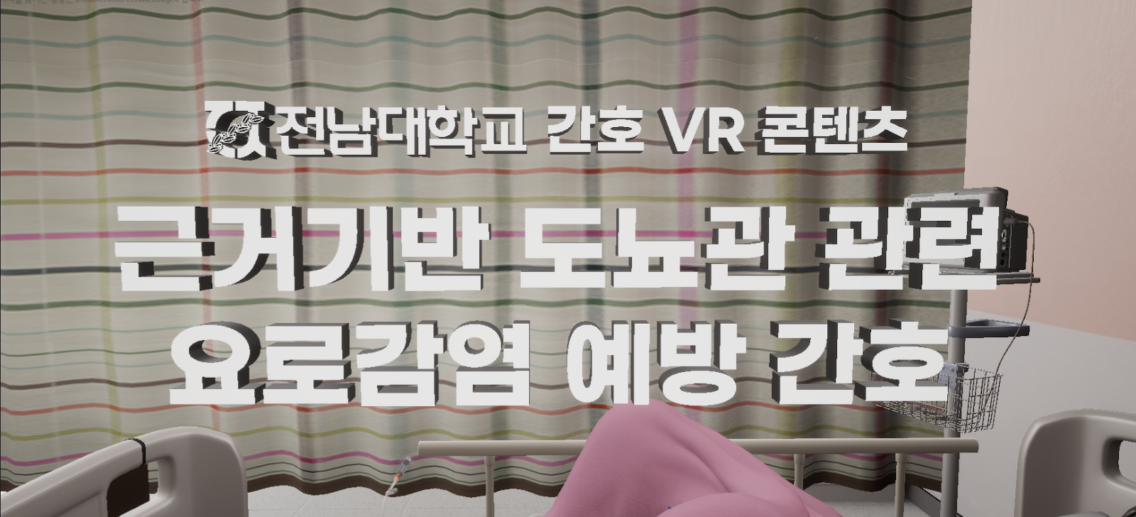 Catheter-Associated Urinary Tract Infection (CAUTI) is a common infection among hospitalized patients, primarily caused by improper catheter management and non-sterile procedures. Precisely performing catheter insertion and maintenance in clinical settings is critical for infection prevention. Accordingly, this VR content is designed to allow safe practice of catheter insertion and maintenance procedures. The CAUTI Prevention Nursing VR content provides opportunities for repeated practice of nursing procedures readily applicable to real clinical settings, effectively strengthening the essential competencies required for safe patient care.