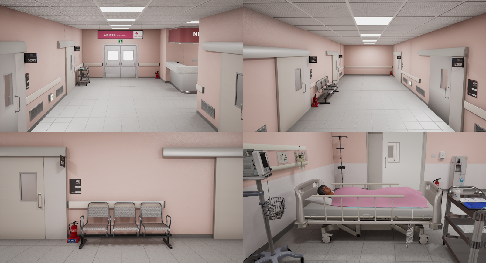 01. Photorealism: The environment reflects real hospital layouts and movement routes, delivering lifelike surroundings. Leveraging Unreal Engine 5, Samwoo Immersion bridges reality and virtuality with high-end graphics—pursuing film-grade photorealism without polygon constraints—to faithfully reproduce hospital environments.