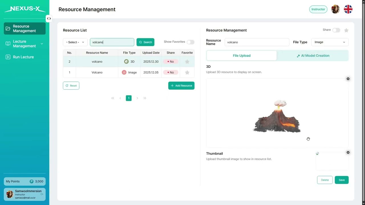 Upload lecture materials (PDF, video) and place 3D