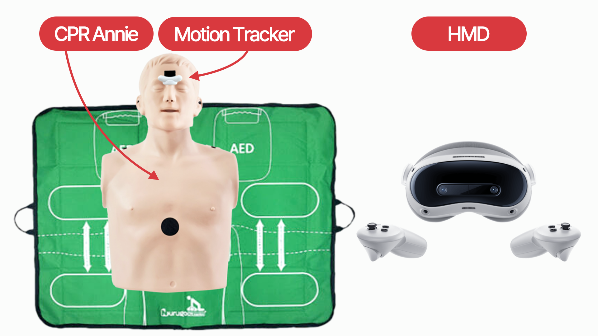 CPR-X (CPR/AED XR Training Kit) precisely integrates a real manikin with an XR environment