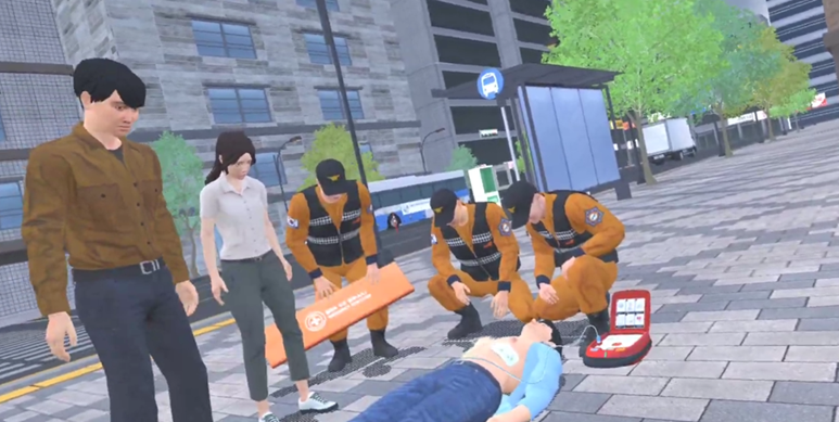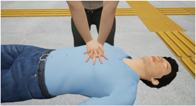 CPR-X recreates key real world environments where incidents may occur such as city streets, subway stations, and hotel lobbies in XR, enabling CPR training under conditions that closely mirror reality.