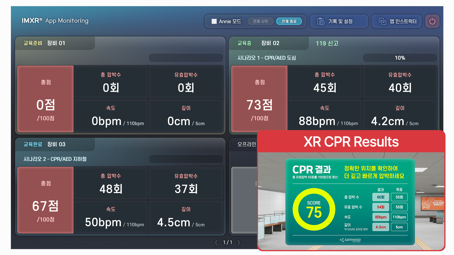 CPR-X enables multiple trainees to participate simultaneously, while instructors use App Instructor and App Monitoring to view each learner’s progress on a single screen and control the training flow in real time.